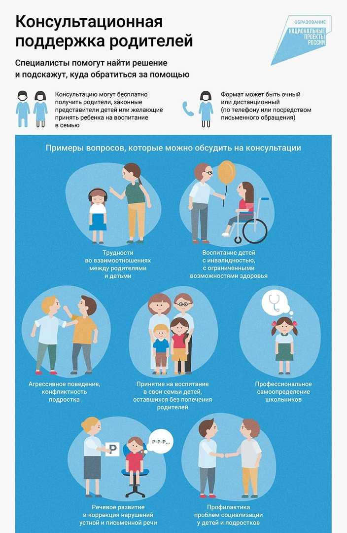 Уважаемые родители, напоминаем вам, что в рамках национального проекта «Образование» регионального проекта "Родитель+" консультации по вопросам развития, воспитания, социализации детей, детско-родительских отношений бесплатные.
